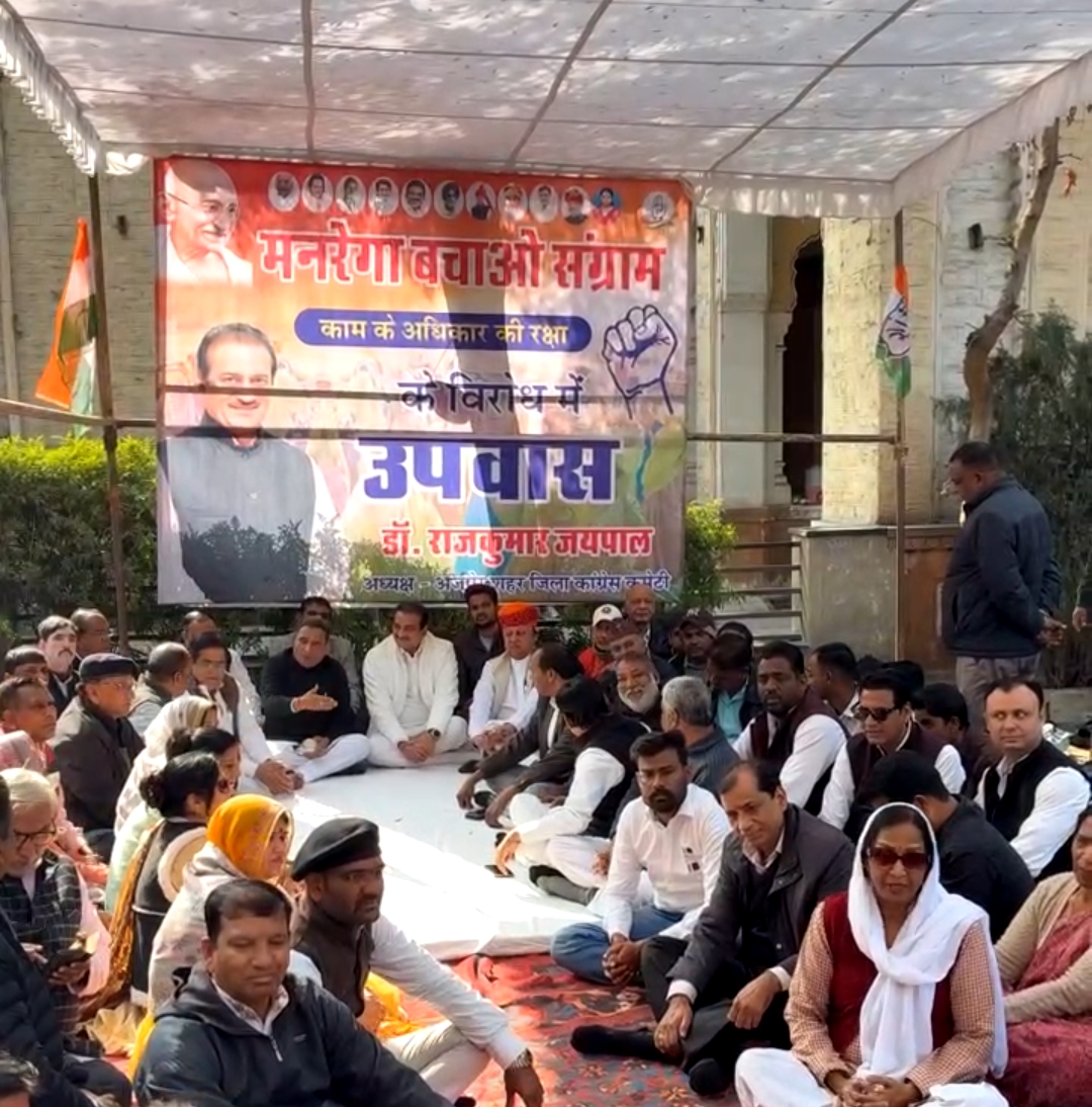 केंद्र की भाजपा सरकार द्वारा महात्मा गांधी राष्ट्रीय ग्रामीण रोजगार गारंटी योजना (मनरेगा) को कमजोर करने और इसके मूल स्वरूप में बदलाव के प्रयासों के खिलाफ राजस्थान प्रदेश कांग्रेस कमेटी (पीसीसी) के निर्देश पर अजमेर में “मनरेगा बचाओ संग्राम” के तहत एक दिवसीय उपवास एवं प्रतीकात्मक विरोध प्रदर्शन आयोजित किया गया।