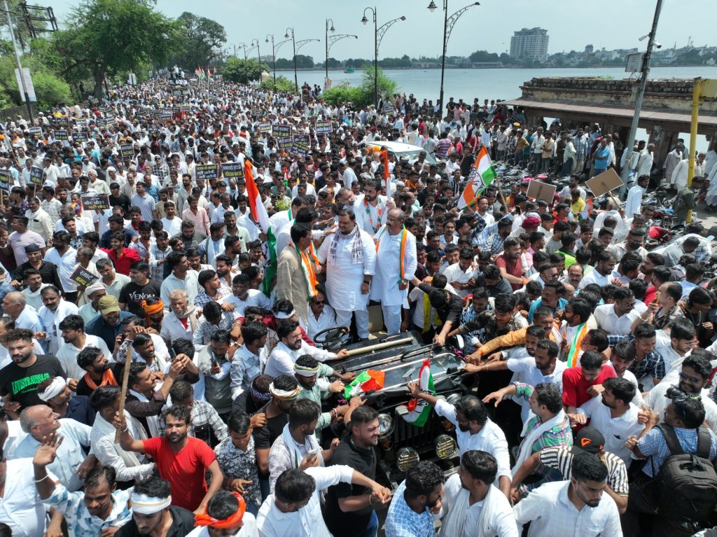 कोटा की सड़कों पर कांग्रेस का आक्रोश फूटा तो नजारा जनसैलाब में बदल गया। किशोर सागर तालाब से कलेक्ट्री तक निकली रैली में नारों की गूंज और तख्तियों की लहर के बीच कार्यकर्ता जोश में दिखे। मंच से नेताओं ने वोट चोरी, भ्रष्टाचार, किसानों की बर्बादी और स्मार्ट मीटर को लेकर केंद्र और राज्य सरकार पर सीधा हमला बोला।