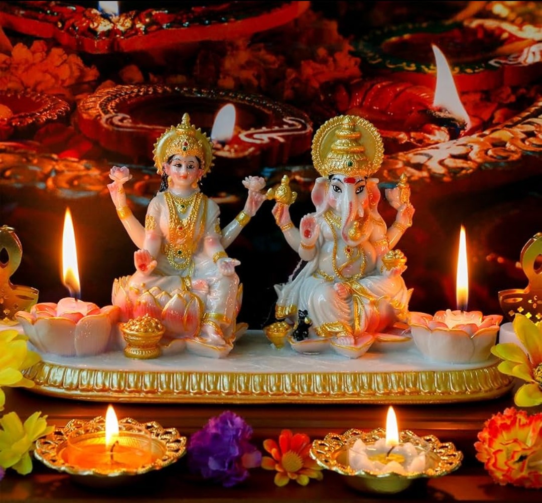 - मां लक्ष्मी और गणेशजी की मूर्तियों को लाल कपड़े पर स्थापित करें।