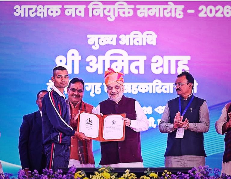 khabaronenewsअजमेर राजस्थान:अमित शाह ने बांटे 8 हजार से अधिक नवनियुक्त पुलिस सिपाहियों को नियुक्ति पत्र Devendra SaxenaJanuary 10, 2026January 10, 202601 mins जयपुर। केन्द्रीय गृह एवं सहकारिता मंत्री श्री अमित शाह ने शुक्रवार को जयपुर में राजस्थान पुलिस के नवनियुक्त सिपाहियों के…